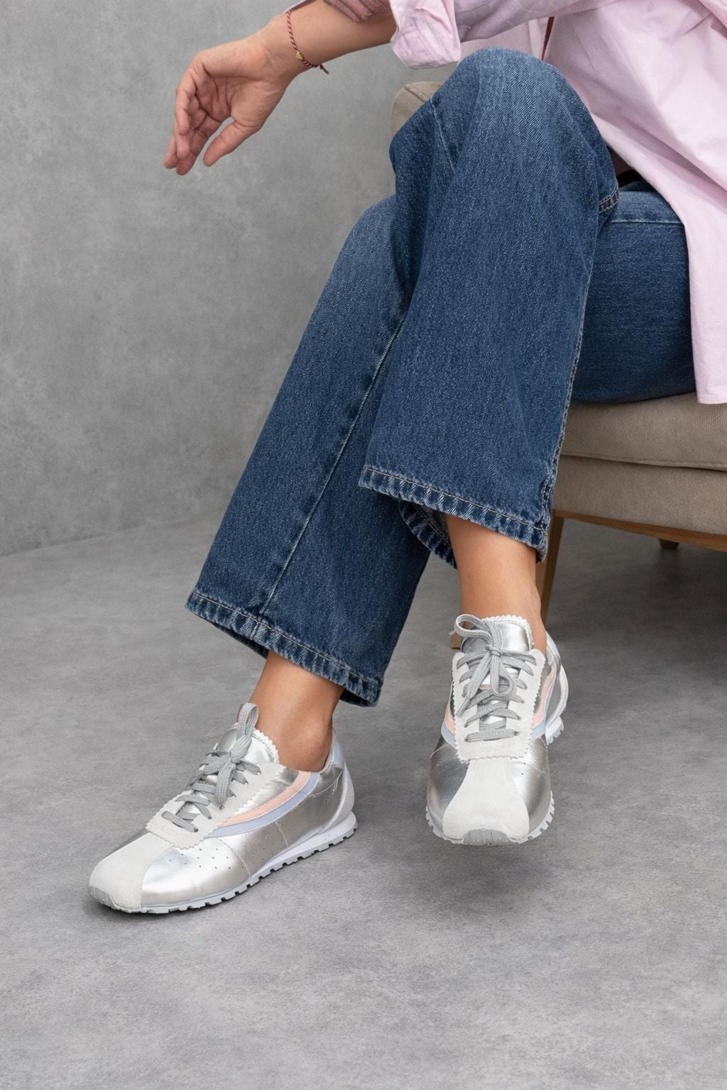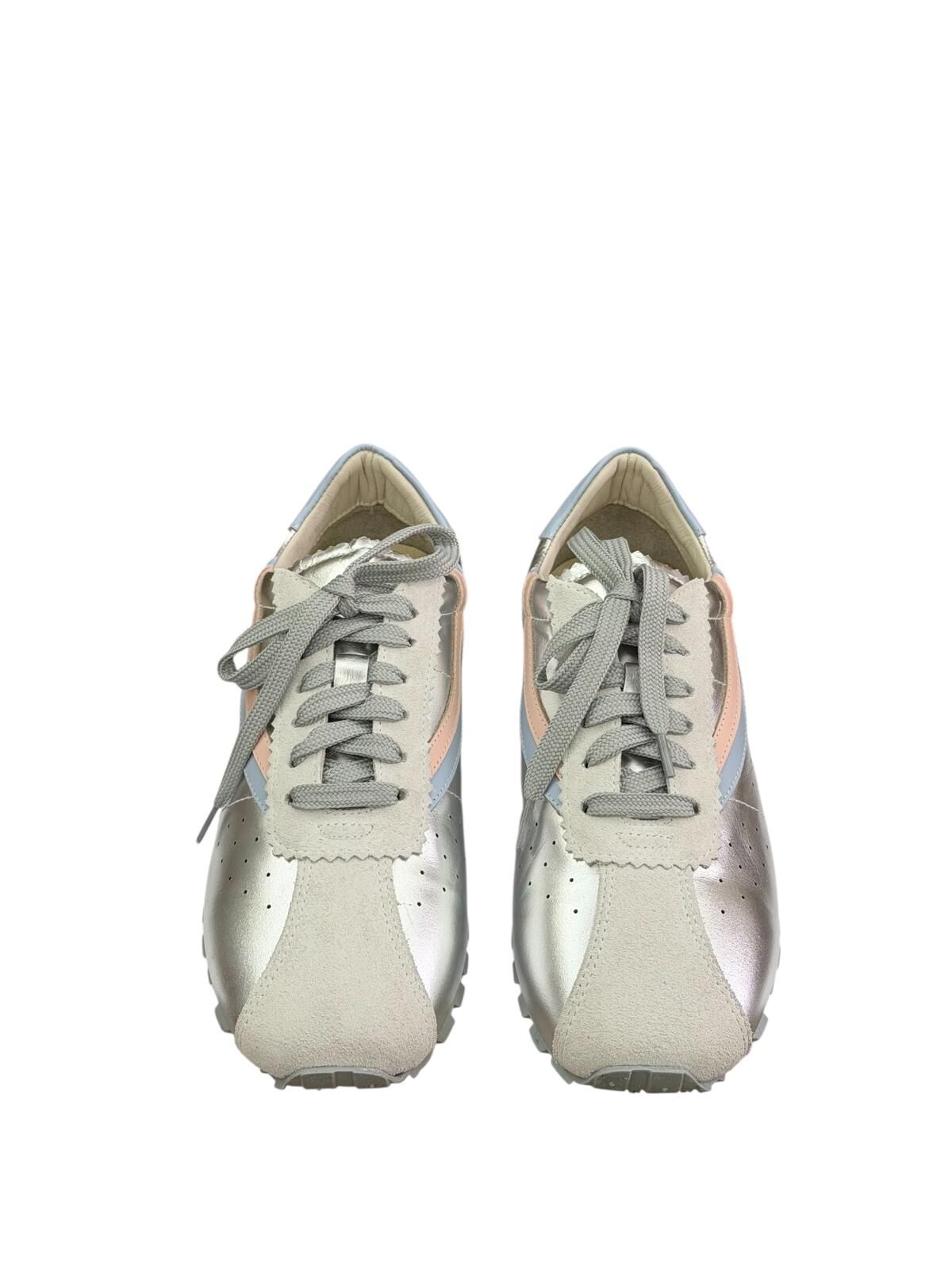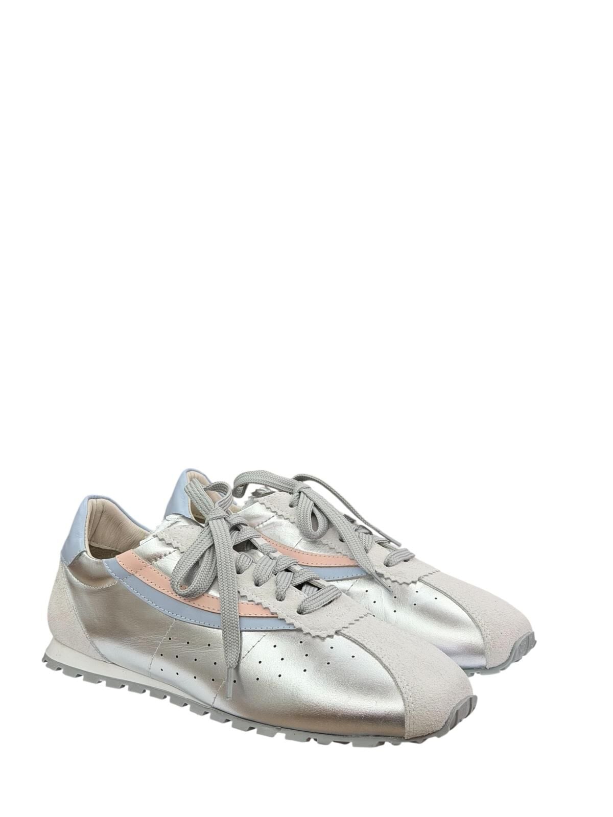 Zarefetin modern yorumuyla tasarlanan bu özel snaker ,stilinde fark yaratmak isteyenler için hazırlandı .Işığı yumuşak bir şekilde yansıtan metalik yüzeyi pastel mavive pudra tonlarıyla dengelenerek sofistike bir görünüm sunar .
