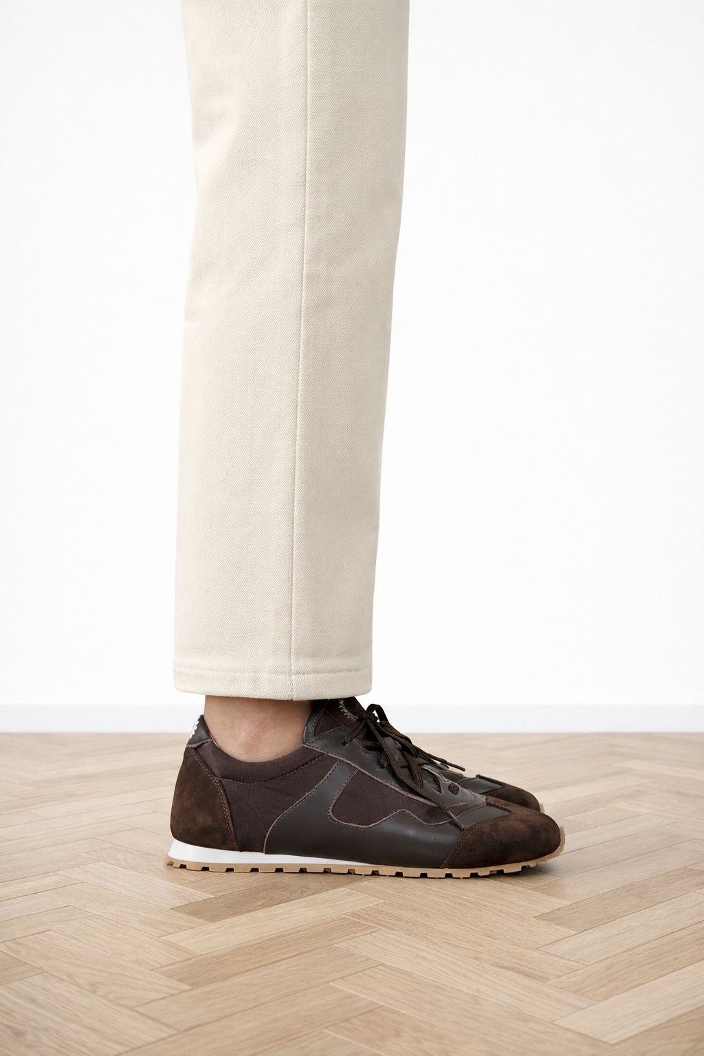 Doğal deri ve özel tekstil dokunuşu ile modern ve dikkat çekici tasarım .